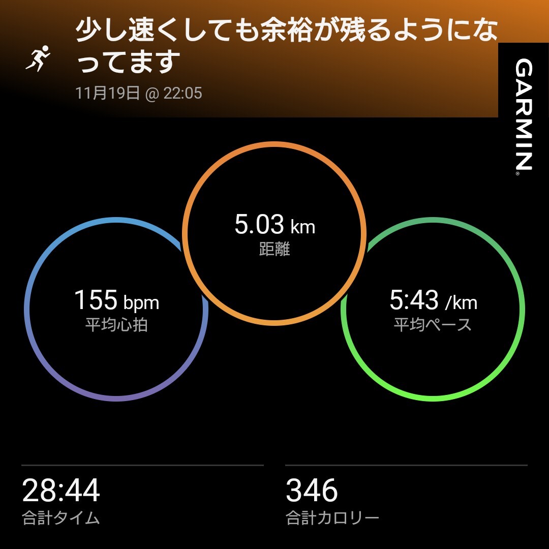 いつもよりガーミン先生の指示(キロ5分半)に近いペースで走れた 寒かったのでいつもより丁寧にアップしたけど体動かんし心拍数上がっている感覚だったけどちゃんといつもより遅いだけあって心拍数も抑えられているので感覚ってアテにならん #garmin #beatyesterday pic.x.com/AXptSJAS5M