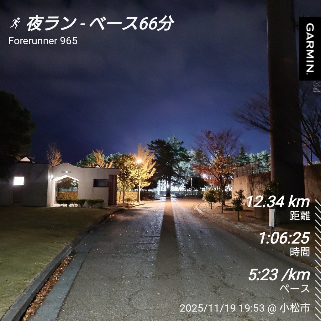 夜ラン12㎞🏃♂️💨終了しました|*・ω・)ノ ベース66分💨 ガーミンのオススメメニューはスプリントだったけど足にちょっと不安もあったので無理なくペース走💨走り終わってその不安も気にならなくなってた🙄 汗冷え注意ですね💦水曜日お疲れ様でした! #garmin #beatyesterday pic.x.com/yIdJyUByyc