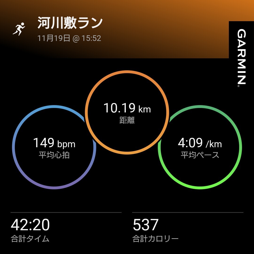 大会直前なので短め高負荷で 痛めたとこは走ったあとしばらくウォーキングしてたら少し痛みが出たけど以前よりマシ 寒くなって走るのきもちよくなったなぁ #garmin #beatyesterday pic.x.com/lDHJP5lAZl