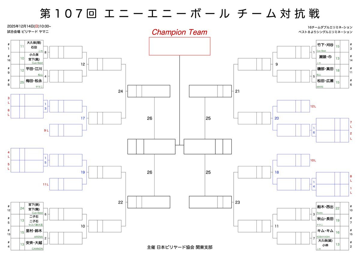 【エニーエニー】 第107回 エニーエニーボールチーム対抗戦 決勝戦の組み合わせです NBA関東支部 発行 #キャロム #carom #3cushion #three_cushion #3cushion #スリークッション #3クッション #ビリヤード #billiards #Billiard #Billiards #エニーエニー pic.x.com/AUiV4goyYT