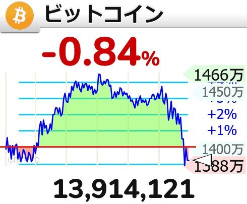 【🟡ビットコイン 】-0.99% 1428万円 #仮想通貨 #bitcoin #btc x.sekai-kabuka.com/?a=14675370926…