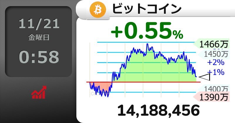 【🟡ビットコイン 】+0.55% 1418万円 #仮想通貨 #bitcoin #btc おやすみプラネット! pic.x.com/v5qpSpVvGP