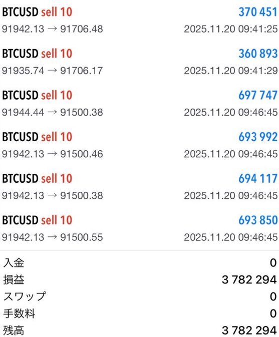 #Bitcoin ショート利確】 はい、""22連勝達成"" +378万円 (500ドル幅) どんな相場も乗りこなす 私にとって稼ぐことは簡単。 私の真似をすれば皆さん仕事も辞めれます。 稼いで本気で人生変えたい人は 『イイネ&フォロー』でついてきて 日経平均東京海上+2.65赤沢 pic.x.com/e6roGqNwuR