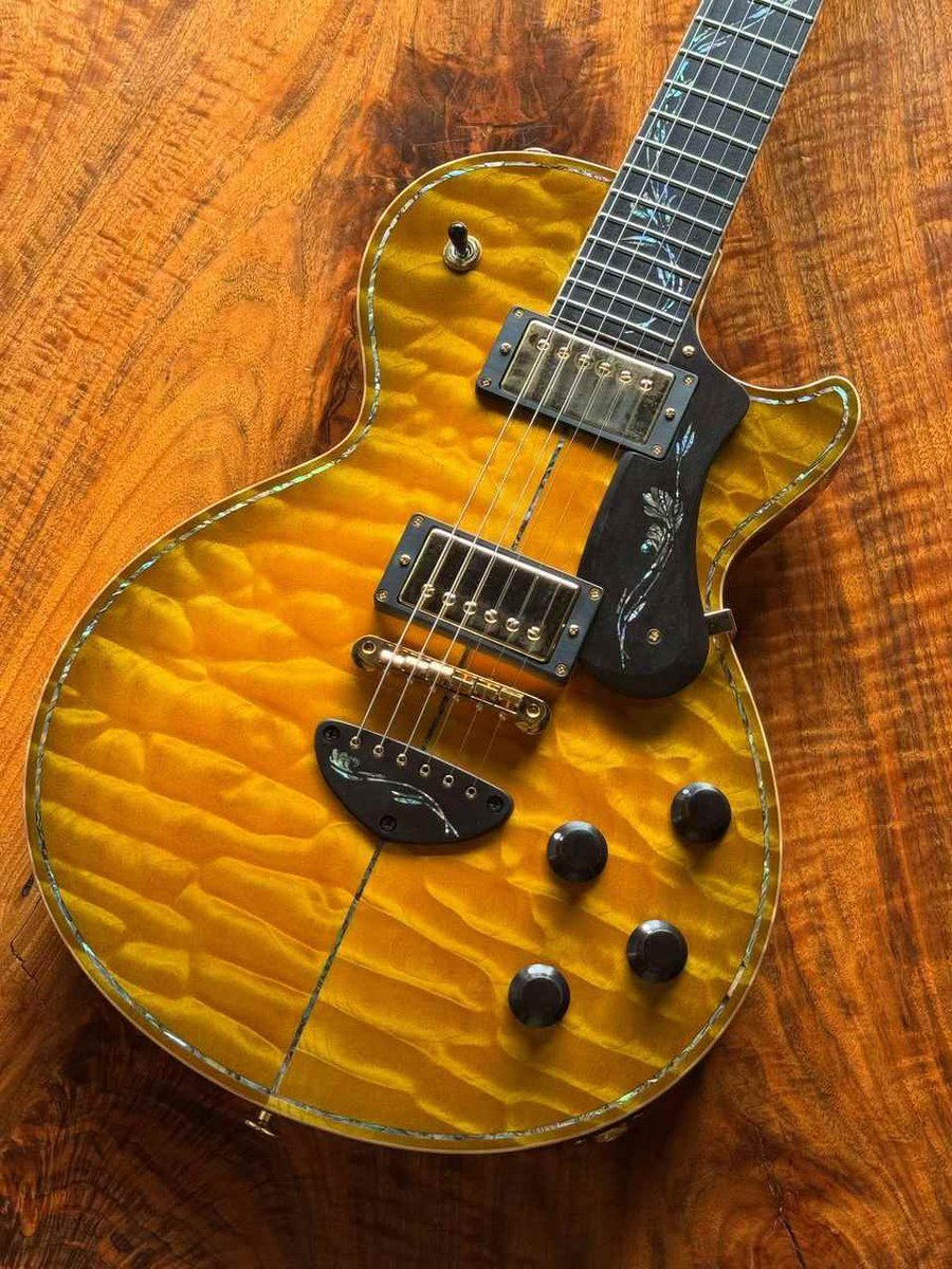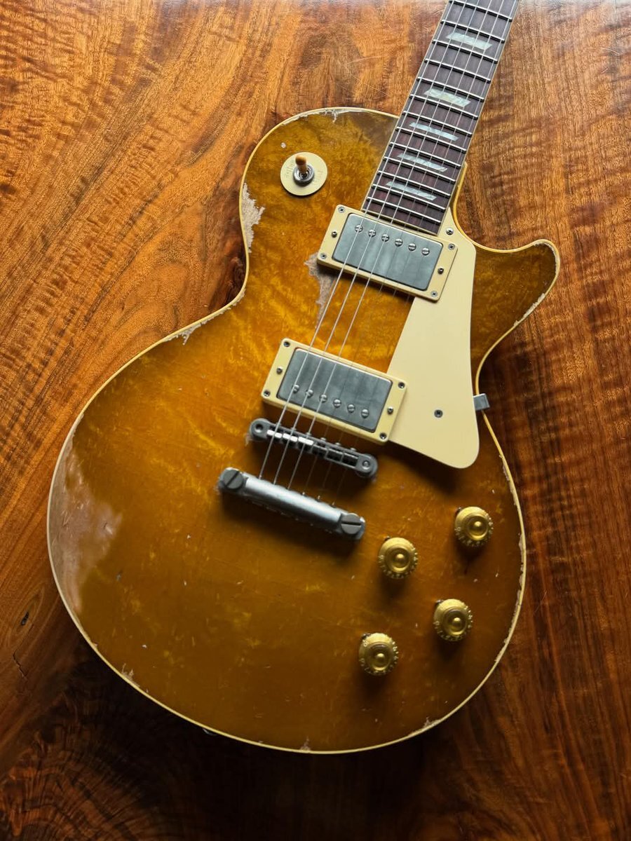 BizenWorks製レスポールシースルーゴールドトップ。右側の方に杢目が見えます😊 #BizenWorks #Lespaul #お気に入りの楽器の写真を晒せ pic.x.com/faOWSjuJ8A