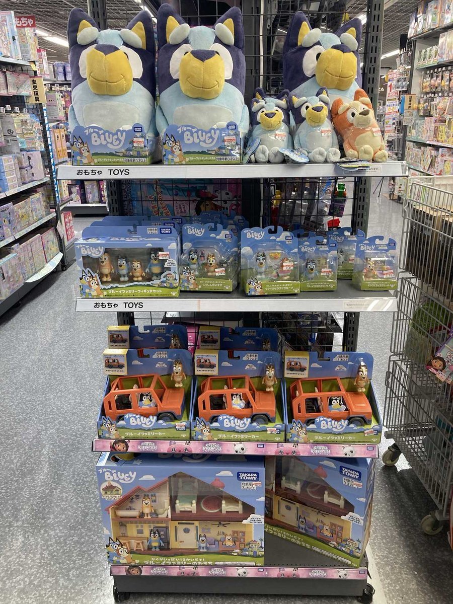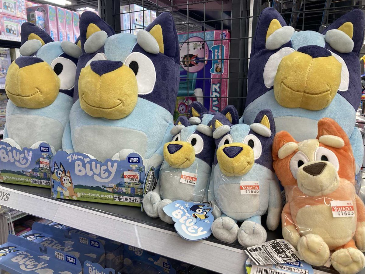 アニメも放送中!ブルーヒーラーの女の子 #ブルーイ グッズが5F玩具コーナーに出来ました。 パパ・ママや妹のビンゴちゃんも、お客様をお待ちしておりますので、ぜひ #ヤマダデンキLABI上大岡 へ遊びに来てください! #BLUEY #オーストラリア pic.x.com/NeVZuRiHO7