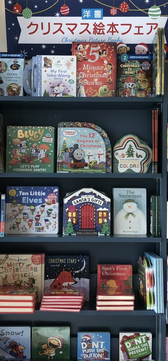 【#洋書フェア】紀伊國屋書店ららぽーと横浜店(ららぽーと横浜3F)では、海外から仕入れた可愛いクリスマス絵本フェアを開催中♪ #Christmas #Disney #Bluey #Spot #Snowman pic.x.com/kKcTQPCIG8