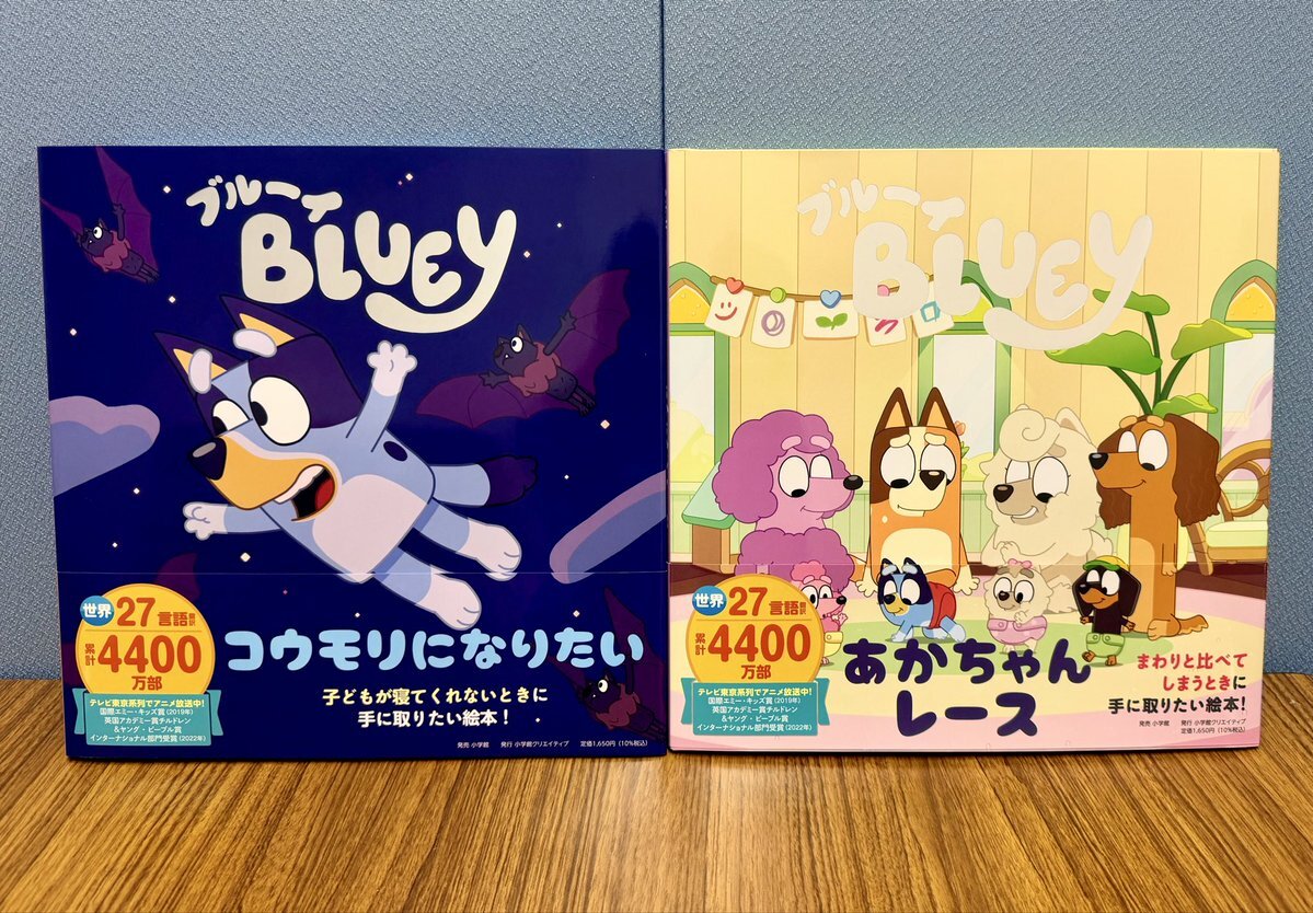 【ブルーイ】 書店さま用拡材の見本が届きました🐾 かなりキュートな仕上がりです! ご希望の書店様はご連絡ください!💬 発売までお楽しみに...<3 ブルーイ こうもりになりたい shogakukan-cr.co.jp/book/b10145137… ブルーイ あかちゃんレース shogakukan-cr.co.jp/book/b10145138… #ブルーイ #bluey @Bluey_jp pic.x.com/rncVAK9aKg