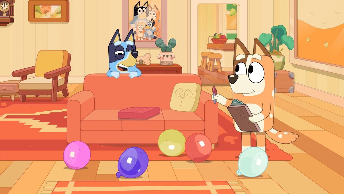 明日の朝7時からはブルーイ📺🩵 「ママのがっこう」📝 ブルーイは、たくさんの風船を子供たちに見立てて、良いママになるための学校のごっこ遊びを始めた。でもママになるのは意外と大変!? みんな見てね🎵✨ #bluey #ブルーイ pic.x.com/zLF0Y0J4VG