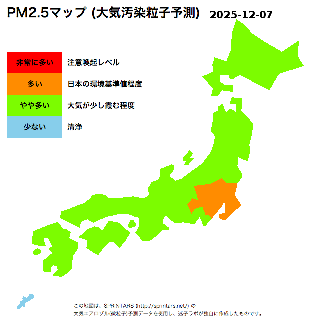 【PM2.5マップ 大気汚染粒子予測】12月7日 多い: 首都圏 SPRINTARS sprintars.riam.kyushu-u.ac.jp/forecastj.html #bot pic.x.com/Nz2zb0g4M6