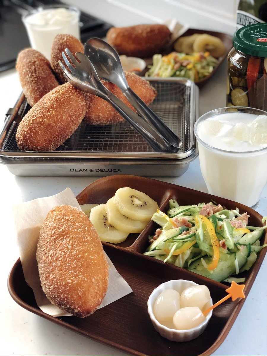 The bread is filled with spicy curry 揚げたて🔥熱々カレーパン☄️を 夫に食べさせたい為に 休日昼ご飯はカレーパン ミキサーでラッシーもプラス ヨーグルト、牛乳、レモンで出来ますよ 甘みは少々のハチミツにしました #bread #パン作り #おうちごはん pic.x.com/OBsR5slL3H