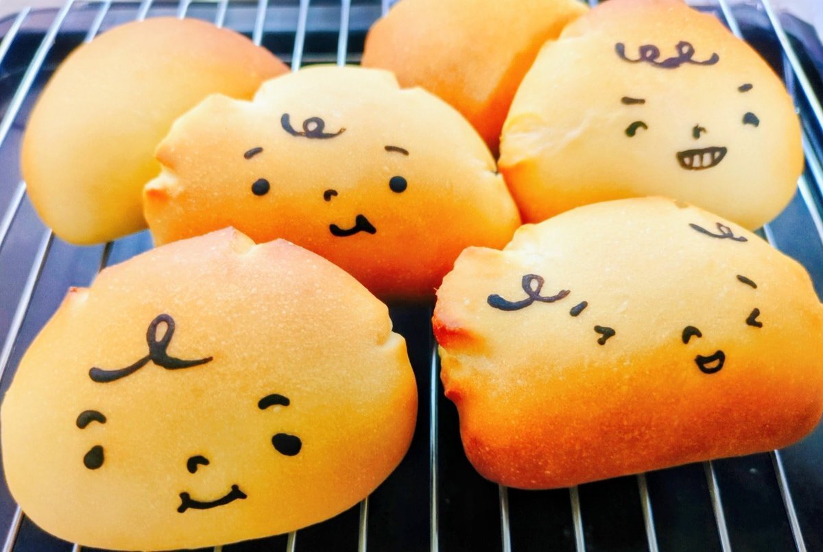 ☺️クリームパン😁 甘いパンが食べたい♪ という事で仲良しクリームちゃんたちがワラワラと集合! 頭からかじっちゃうよ〜 ごめんよ~😅 でも甘いカスタードクリームパン美味しかった💕 #パン作り #手作りパン #おうち時間 #クリームパン #bread pic.x.com/BV6ZJ2k5xr