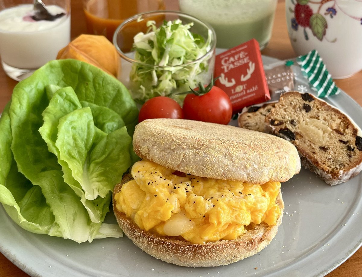 Ohayo 𖤣𖥧𖥣𖡡𖥧𖤣・ᴗ・*¨*•.¸¸♬︎ Pasco 麦のめぐみ全粒粉入りイングリッシュマフィンにコンテチーズ入りスクランブルドエッグ MUJIシュトーレン #Breakfast #朝食 #おうちごはん pic.x.com/W7OgWFbwBC