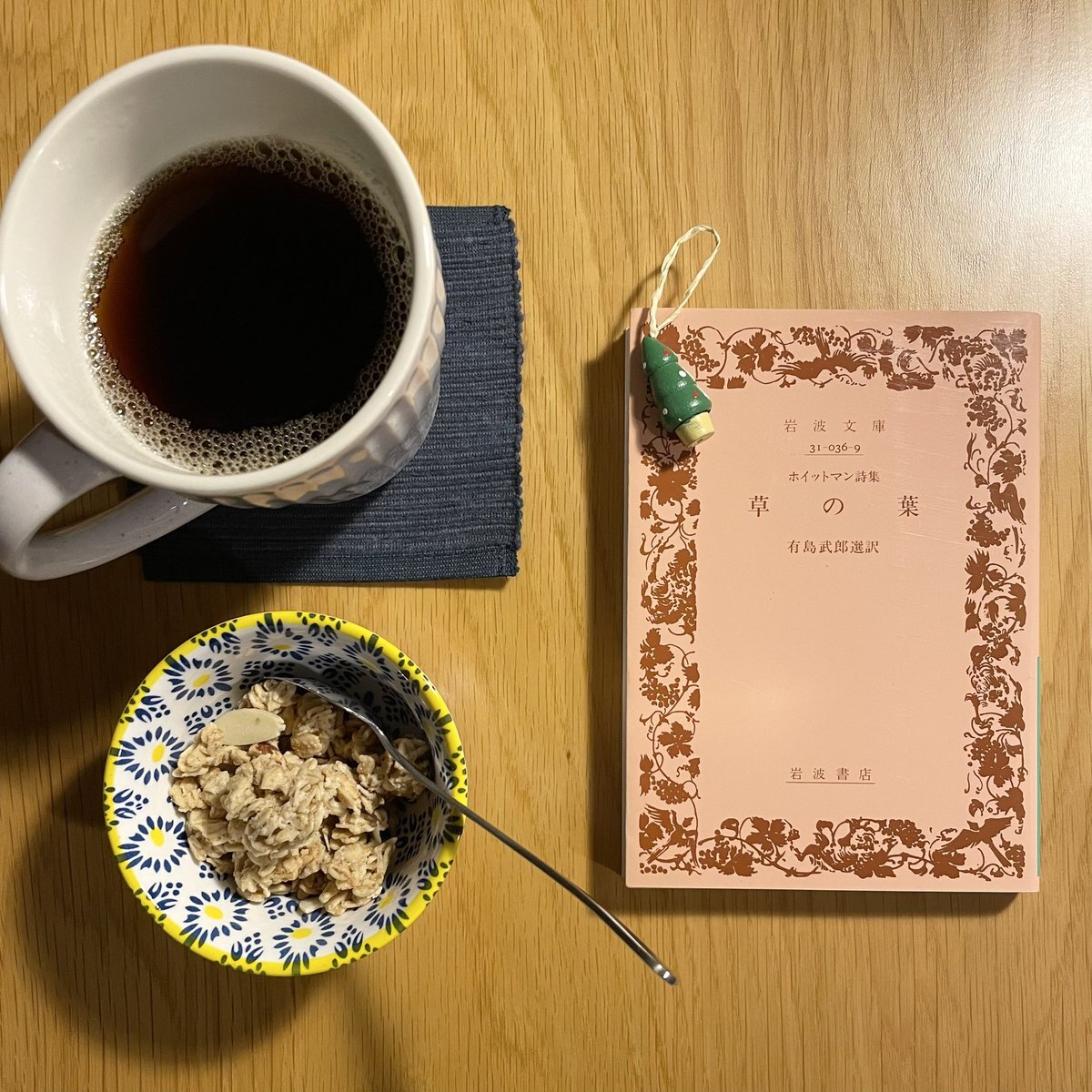 金曜日、ホイットマンの朝📙 心はすでに冬至と新月の先へ。 少し早いですが、そんな心地の今🌱 心身共に調子が良く、 それだけでとても幸せです😊(浩太) * #金曜の朝 #朝の読書 #朝食 #breakfast #コーヒー #coffee #朝のコーヒー #ベイクドオーツ #ホイットマン #waltwhitman #有島武郎 pic.x.com/86RgncRY0W