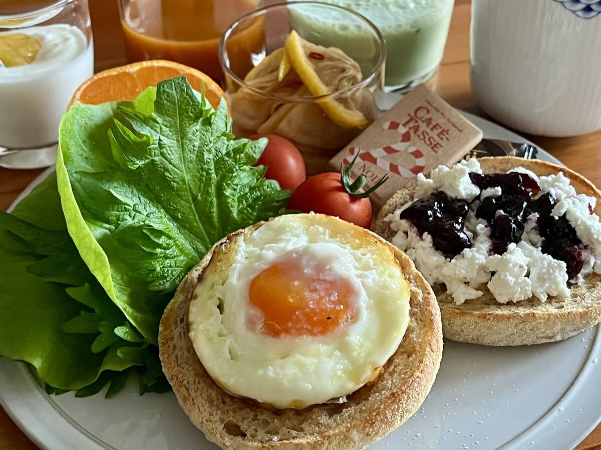 Ohayo 𖤣𖥧𖥣𖡡𖥧𖤣・ᴗ・*¨*•.¸¸♬︎ Pasco 麦のめぐみ全粒粉入りイングリッシュマフィンにフライドエッグ/バター・カティジチーズ・ブルーベリージャム #Breakfast #朝食 #おうちごはん pic.x.com/Y3LiRTxpD2