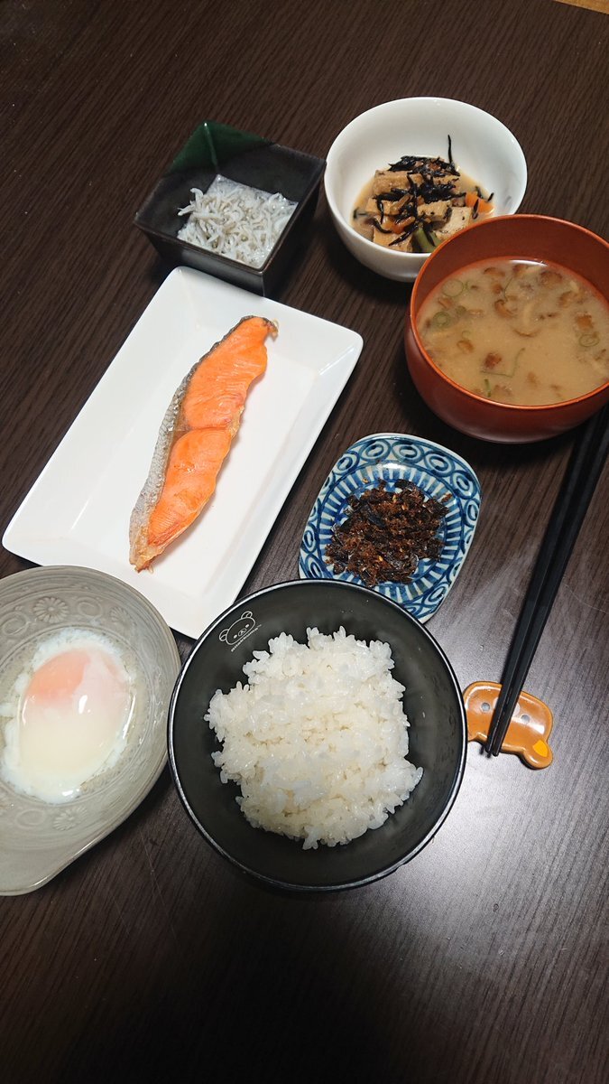 🏡📻️🎶🎶あさごはん💕 お仕事お休みだからしっかり食べます✨ 🥚温泉卵 🐟️鮭焼き 🐟️シラスおろし 🟫厚揚げひじき煮 ※オカカ昆布 🍄味噌汁はナメコ&ネギ 🍚白飯 美味しく頂きました🙏 さて 何しようかなぁ✨ #おうちごはん #マイあさ #Breakfast pic.x.com/RDQIQugo7i
