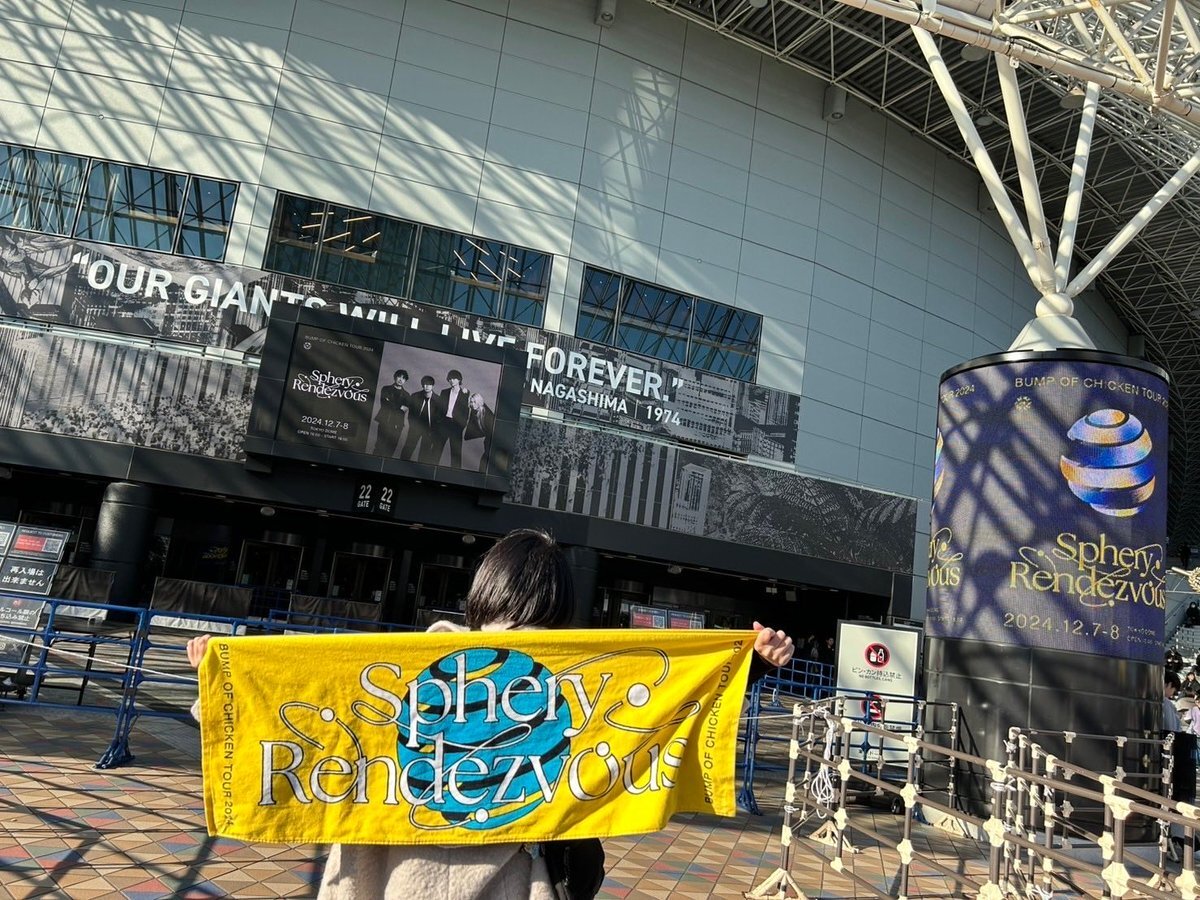 俺は友達と連番してたんだけど、お姉ちゃんは単番でファイナル参戦してて、お姉ちゃんの席は花道隣接のA10ブロック2列で、 しかも藤くんが投げたタオルがお姉ちゃんの1列後ろの人がゲットしたから、円盤絶対映ると思うんだよなぁ😂 #BUMPOFCHICKEN #SpheryRendezvous pic.x.com/zT1N01CI0L