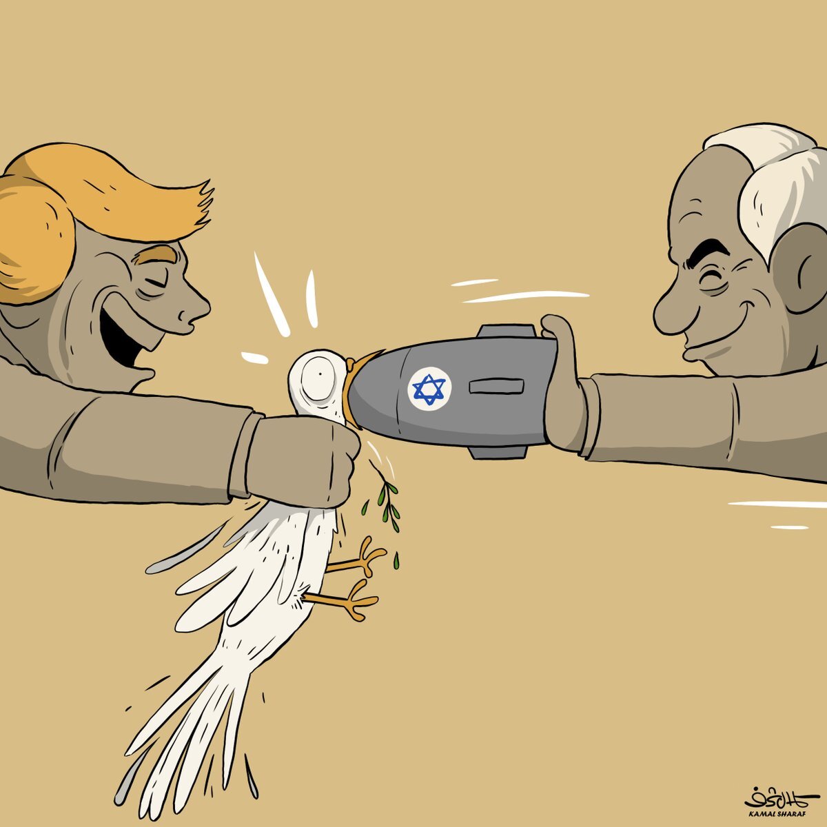 トランプ 「占領イスラエルによるガザ空爆は停戦を破るものではない。」 #Cartoon アル・マヤディーンのウェブサイト mdn.tv/8k3X x.com/kamalsharf/sta…