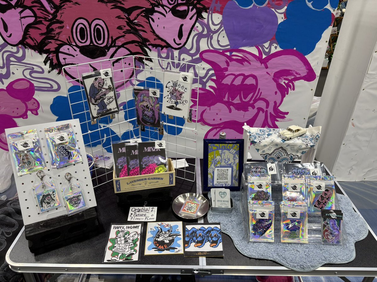 クリエイターズマーケット vol.53 ありがとうございました! 年内ラストライブペイント最高にカッコよくて可愛い1枚が出来ました! 今年沢山活躍してくれた色とLoveをたっぷり使いました💜🩷💙 次は5月!またお会いしましょう💫 #クリマ53 #イラスト #ライブペイント #cartoon #illustration pic.x.com/3XWdkwncvY
