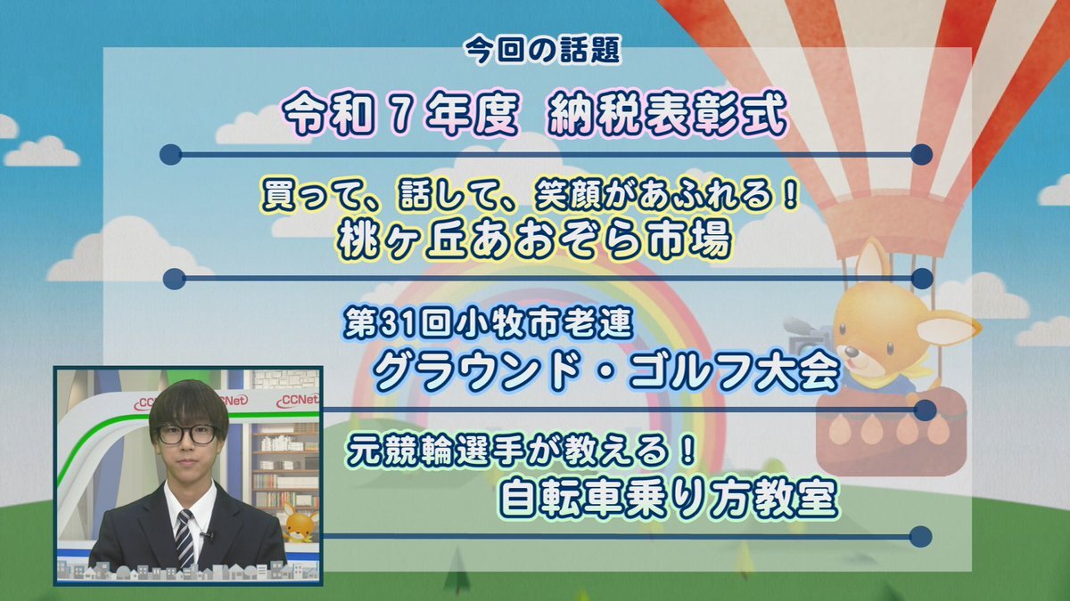 12月6日からの『ウィークリーこまき』は こちら! ✔令和7年度 納税表彰式 ✔買って、話して、笑顔があふれる! 桃が丘あおぞら市場 ✔第31回小牧市老連 グラウンド・ゴルフ大会 ✔元競輪選手が教える!自転車乗り方教室 今回は桃陵中の生徒2人も番組を進行してくれています!お楽しみに!