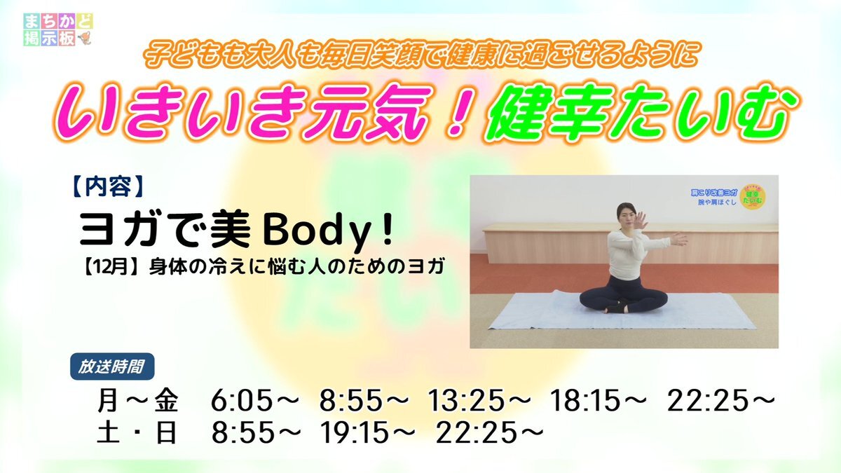 「いきいき元気!健幸たいむ」 「ヨガで美Body!」と題して、お家で簡単に出来るヨガのポーズをご紹介していきます! 12月のテーマは「身体の冷えに悩む人のためのヨガ」です。 ぜひみなさんもテレビの前で一緒に身体を動かしましょう! #川越町 #朝日町 #多度町 #CCNet pic.x.com/ebyjuRIlkd