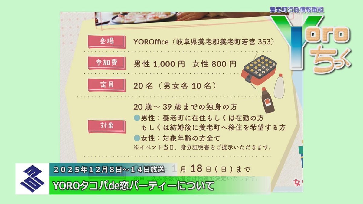 今週の🟢行政情報番組Yoroちっく🟢では 🟠YOROタコパde恋パーティー🟠をお送りします。 ぜひご覧ください! #CCNet #養老町 #行政情報番組 #Yoroちっく pic.x.com/9DbTYbkBND