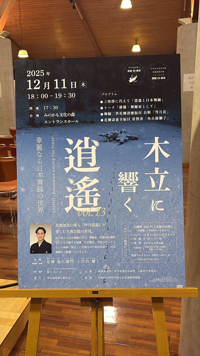映画「#国宝」出演! 花柳 惠右衛門さんが、美濃加茂市の みのかも文化の森で、 日本舞踊を披露してくれます☺️ 18時開演です! 当日券もあと少しあるそうなので、 気になった方はぜひ🙏 放送はウィークリーみのかも 2026年1月5日〜です🪭稲垣 #ccnet #美濃加茂市 pic.x.com/Se5Iqyt1Oy