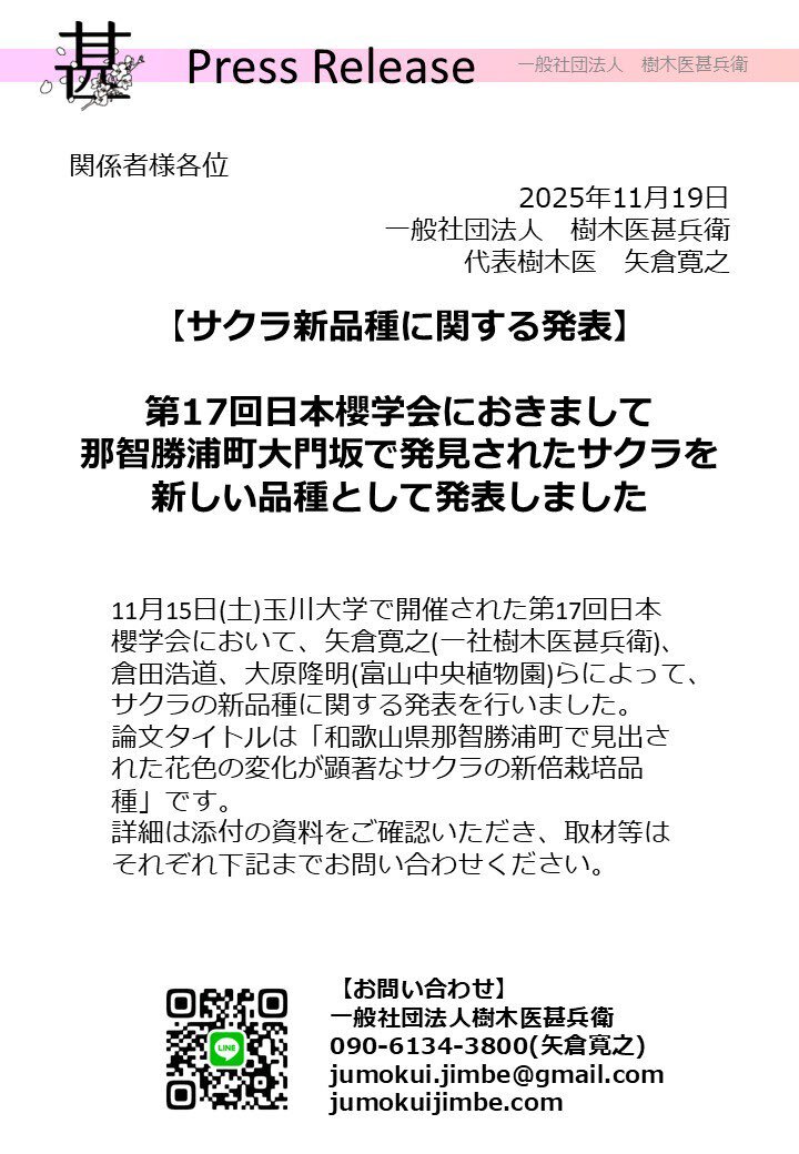 第17回日本櫻学会において、 サクラの新品種に関する発表を行いました #桜 #さくら #サクラ #クマノザクラ #開花情報 #観察会 #自然観察 #体験学習 #クマノザクラガイド #樹木医甚兵衛 #樹木医 #森林インストラクター #kumano #kumanocherry #cherrybrossom #sakura #cerezo #genefarm #treedoctor pic.x.com/LKw20fW3cs