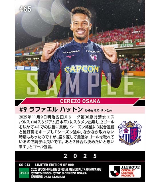 ■EPOCH-ONE■⚽️✨ #セレッソ大阪 J1リーグ第36節🆚清水エスパルス 【#ラファエルハットン】 得点ランクトップまで2差に迫る2ゴール🔥🔥 1枚¥500(送料無料) #メモリアルカード 11/19(水)17時~72時間限定 受注販売開始! epoch-card.com/shop/r/r1138/ #エポックワン #Jリーグ #セレッソ大阪 #cerezo pic.x.com/PNuJJlmqpD