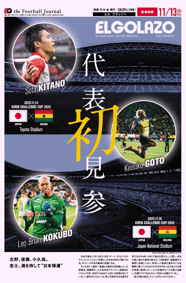 代表初見参。若き才能、新たなる期待🔥 【エルゴラ+】最新号配信中 elgolazo.jp/products/detai… [キリンチャレンジカップ プレビュー] 日本代表 vs ガーナ代表 #日本代表 #SAMURAIBLUE #JFA #daihyo #エルゴラプラス #cerezo #jubilo #reysol @crz_official @Jubiloiwata_YFC @REYSOL_Official pic.x.com/5JAl6RmRyP