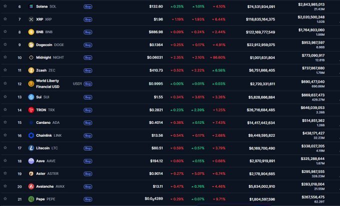 BREAKING NEWS: MIDNIGHT RANKS TOP 10 IN TRADING VOLUME 😱😱😱 $NIGHT has surged into the top 10 cryptocurrencies by volume, overtaking major networks including $Sui, $Tron, $ADA, #Chainlink, #Litecoin, and #Avalanche.