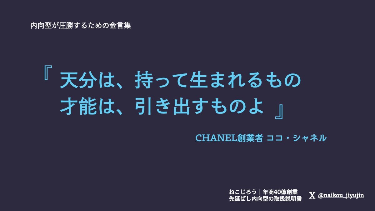 "内向型” の僕を救ってくれた 「CHANEL創業者 ココ・シャネル」の金言 天分は、持って生まれるもの。 才能は、引き出すものよ。 #CHANEL #ココ・シャネル #71029おは戦🌊1z pic.x.com/YReL40vZUh