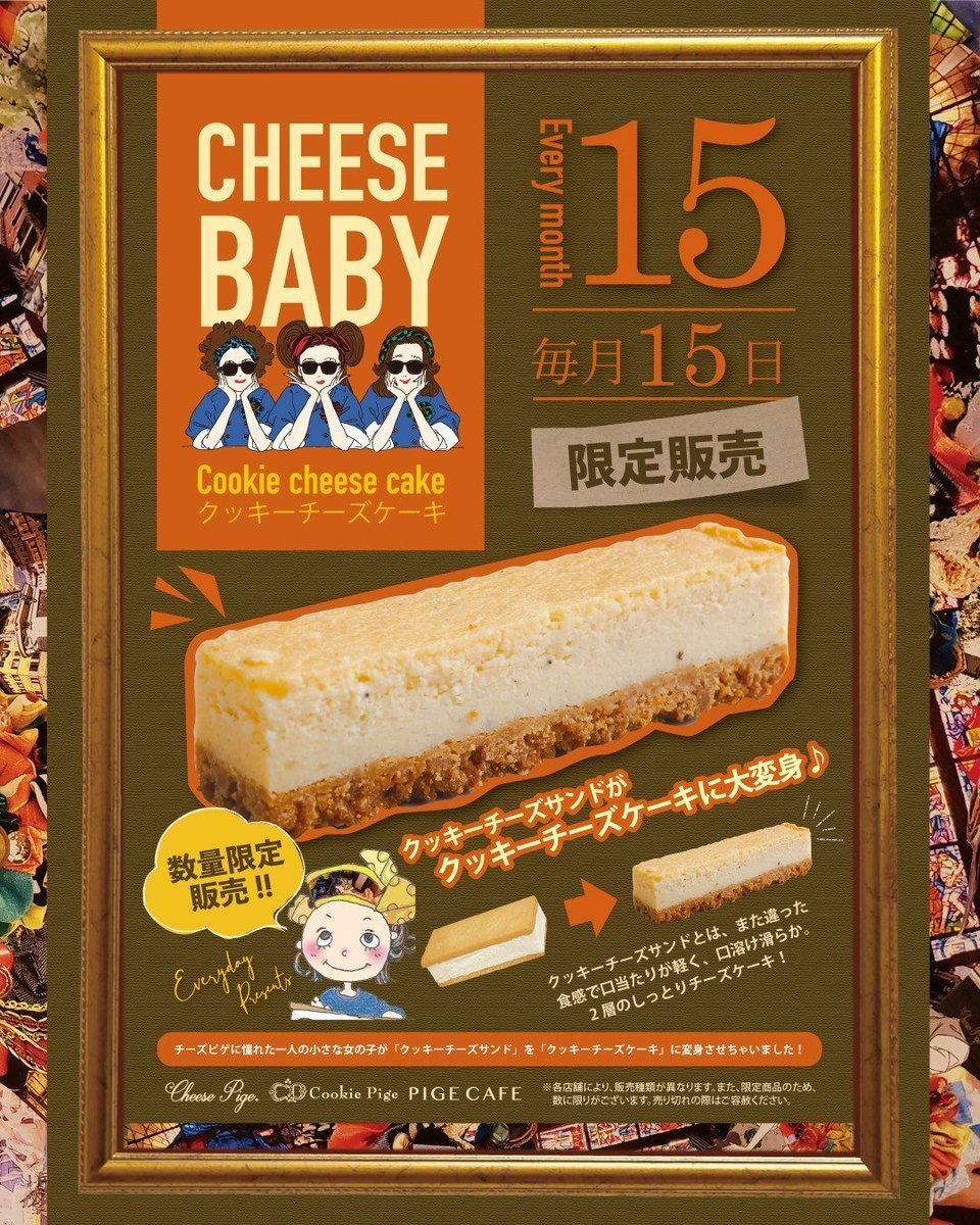 本日15日限定商品のクッキーチーズケーキを販売いたします! 今回南与野店では4種類のお味をご用意しております✨ ・濃厚バニラ ・チョコラ ・アーモンドカマンベール ・マロングラッセ ぜひご来店お待ちしております! #CheesePige #チーズピゲ #南与野 #埼玉 #チーズ #チーズケーキ pic.x.com/45mjisxNbL