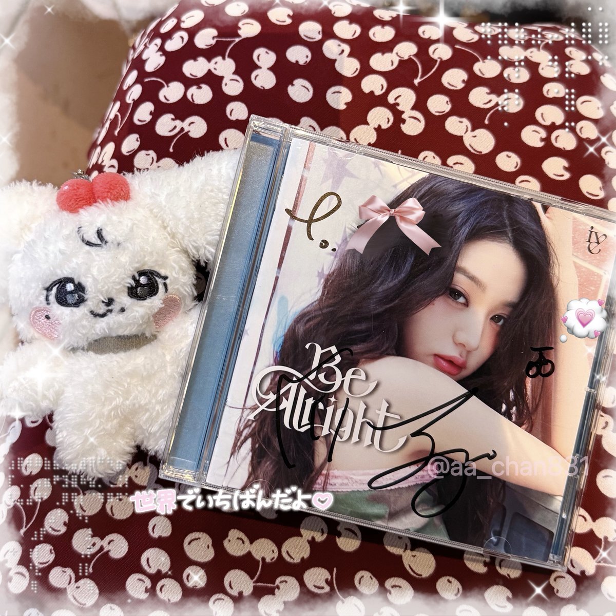 251012 ♡ IVE Be Alright 個別サイン会 ウォニョンちゃんからさくらんぼ🍒ᝰ✍🏻𝑳‌𝑶‌𝑽‌𝑬🩷ྀི ちぇりたん好きだからチェリーワンピを着て行ったら、あだ名がチェリー🍒になってたw このあとブースはいったら🐰「ちぇりーちゃんきましたー」って言われたのと、また次🐰「ちぇりー!」って呼ばれたww