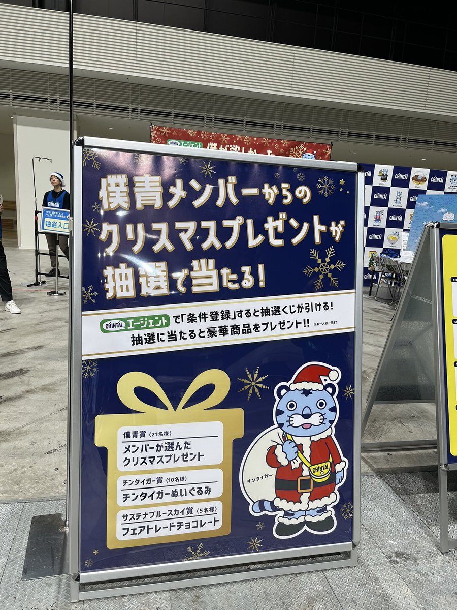 変わらず僕青を応援してくださる #CHINTAI さん 握手会に早く行かねばと気を取られ チンタイガーの写真を撮るのを忘れた💦 残念賞のクリアファイルいただいたのです #僕青クリスマス2025 pic.x.com/J5CQr8JptE x.com/CHINTiger/stat…