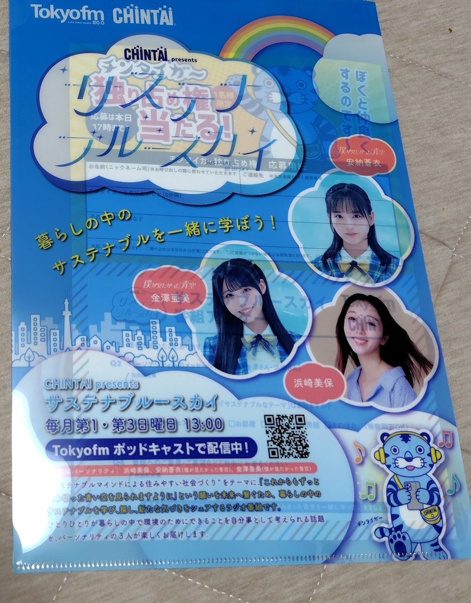 \お知らせ🐯💙/ TOKYOFM「#AuDee」にて 「#CHINTAI presents #サステナブルースカイ」配信中 パーソナリティは、 #浜崎美保 さんと #安納蒼衣 #金澤亜美 テーマは、 『使わないけど、捨てられないで眠っているもの』👘 試聴はこちら 🔗👉audee.jp/program/show/5… ぜひご視聴ください! #僕青 pic.x.com/iP7Kq3jawR