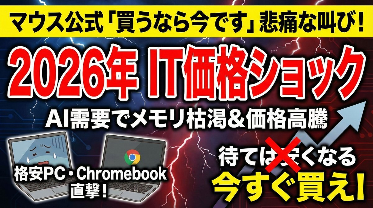 もう安く買えない?格安PC・Chromebookを襲う「2026年問題」と今すぐ買い替えるべき理由 youtu.be/r0w1JEpyQA4 #Chromebook #メモリ高騰 #値上げ pic.x.com/Jo0TyLp5Vc