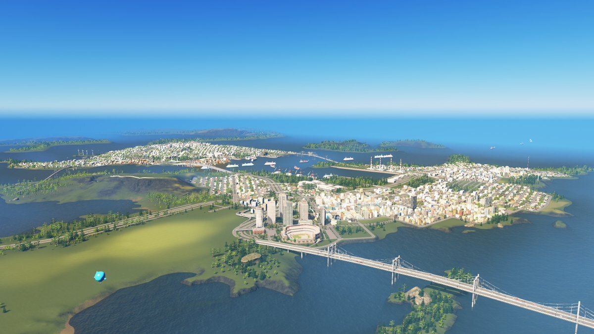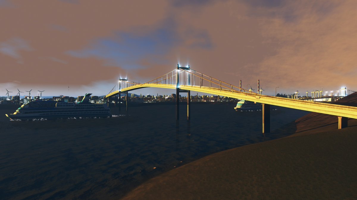 ソーセージ郡の二つの街、シャウエッセンとヘルタ (適当に命名) を結ぶ「シャウエッセン・ヘルタ橋」が開通。 航路があるため桁下クリアランスが高く苦労しました。まあ高さ不足でも船は貫通しますが…(笑) ソーセージ郡の新たなシンボルになるでしょう! #シティーズスカイライン #CitiesSkylines pic.x.com/thzo3HCXHj