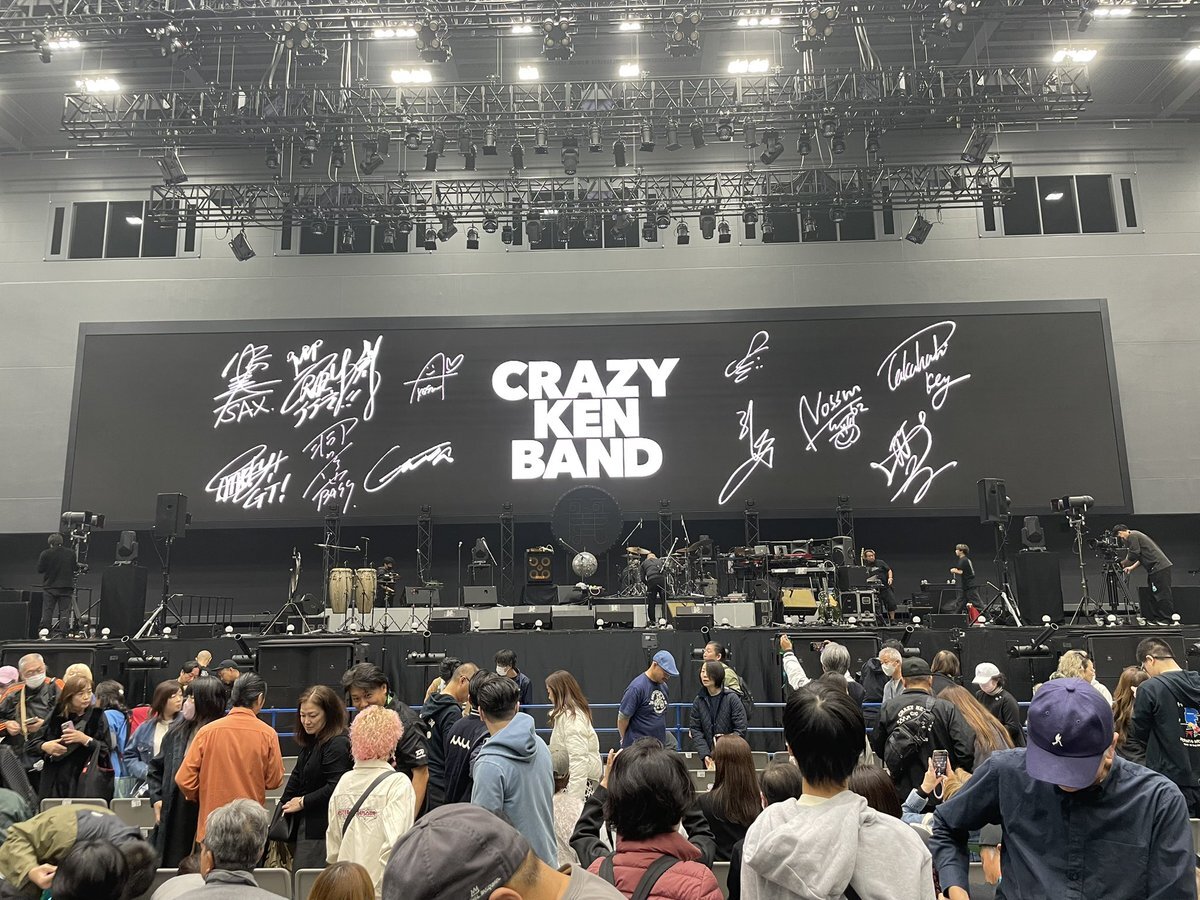 横浜BUNTAI行ってきました! 大きなスクリーンに映る若くてギラギラしてた頃の剣さんかっこよかった😍 ペンライト持ってる人まばらだったけど "麗"の字がかわいくてよき❤️ ジャージ売り切れてたのが残念😢 #クレイジーケンバンド #CKB pic.x.com/UkncxgRiMU