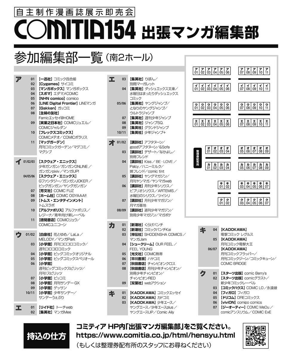 【11/24開催「#COMITIA154」出張編集部】 76ブース・121誌が出展します! 参加編集部を公開しました↓ comitia.co.jp/html/hensyu.ht… お持込には会場で配布している「整理券+エントリーシート」が必要です エントリーシートは事前DL可。事前記入しておくと当日のお持込がスムーズです↓