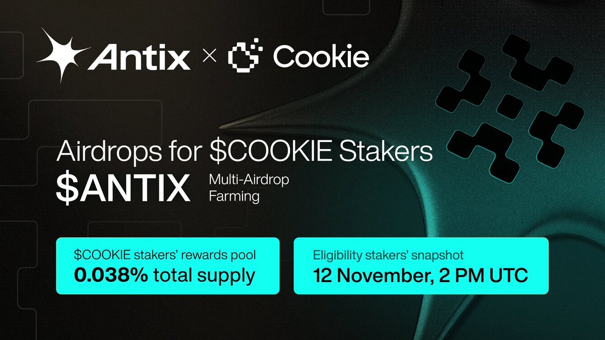 The @antix_in Multi-Airdrop Farming (MAF) for $COOKIE stakers is coming up next! If you’re new here… Multi Airdrop Farming lets $COOKIE stakers get airdrops by locking their tokens in farming pools to earn 10–20% of the total reward pool from most Cookie Snaps campaigns.