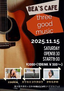 ●11/15(土)出演順 #cookie #カワカミコウタロウ #かわらかの Open 18:30 Start 19:00 配信twitcasting.tv/singer_m.. 続きはこちら twitcasting.tv/singer_master/…