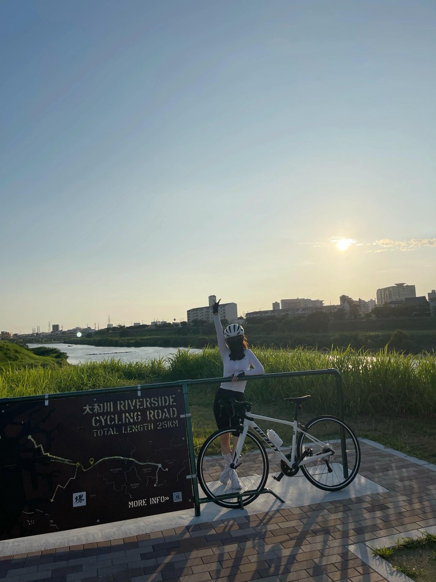 今日のライドは夕日に向かってゴール🌇🚴‍♀️ 大和川サイクリングロード、全長25km完走! 心地よい風と光の中で、身体も心もスッキリ✨ やっぱり自転車って最高🫶 #サイクリング女子 #ロードバイク #夕焼けライド #大和川CR #CyclingLife pic.x.com/Qex6PMmK1j