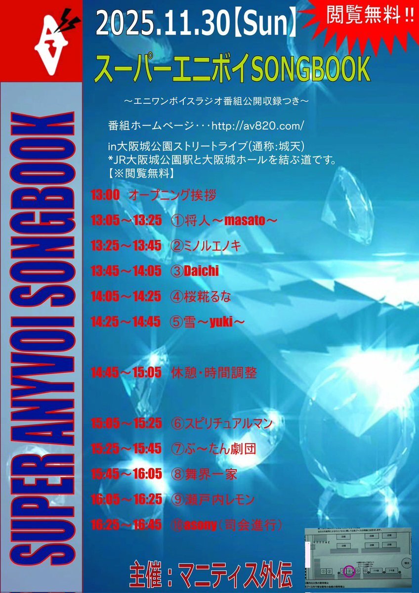 今週、日曜日11月30日 ストリートライブに出演させていただきます! 場所: 城天(大阪城公園ストリートライブ) 出演: 13時45分~14時05分 お時間合う方は是非、遊びに来てくださいね✨️ 相方Masashiくんが助っ人で登場し、 二人で出演する予定です🎤 #城天 #Daichi #Masashi