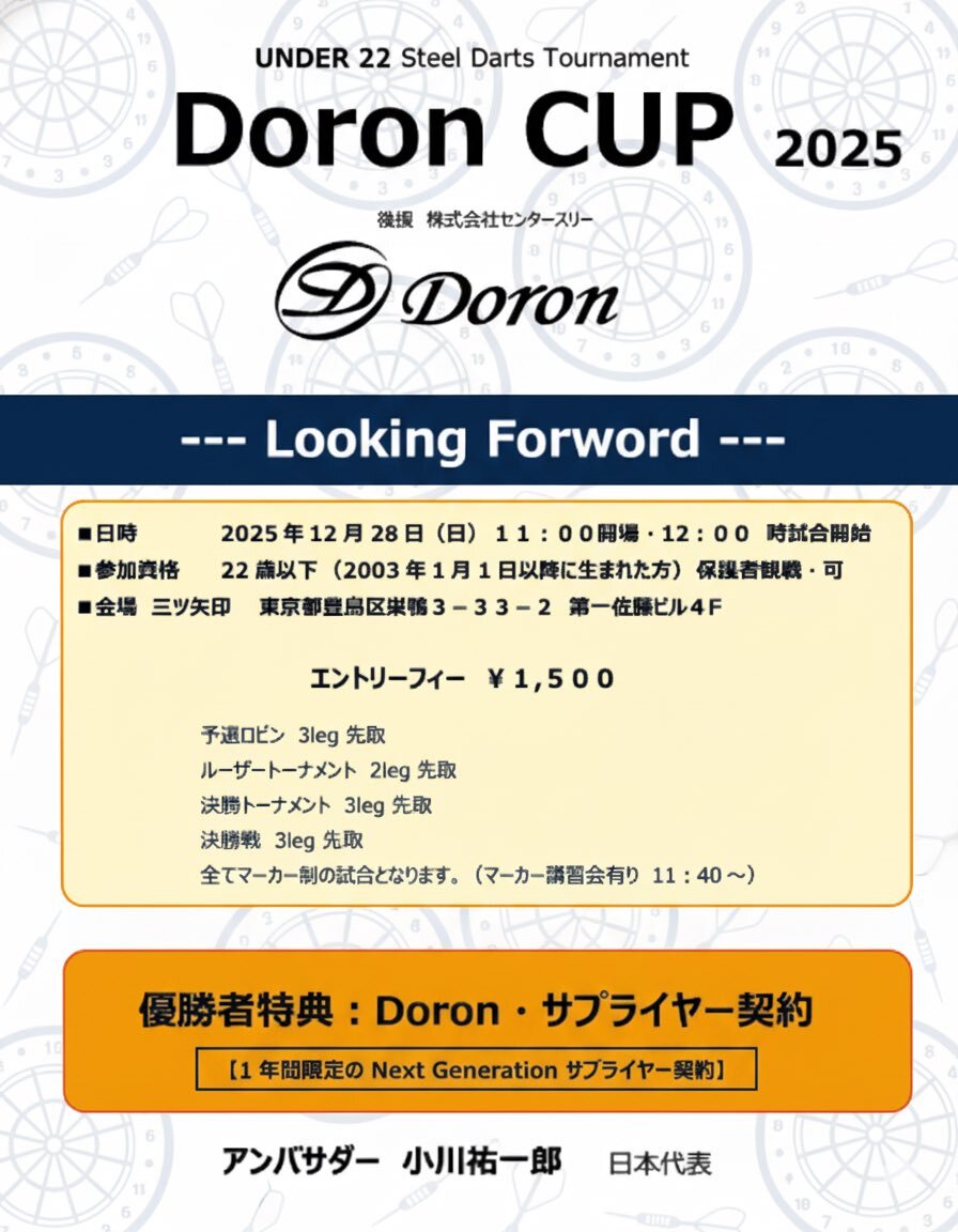 🎯Doron CUP 2025🎯開催✨ 2025年12月28日(日)12時~ 詳しくはPOPをご覧ください😁 株式会社センタースリー様後援の元開催いたします🎉 当日はマーカー制となります。 マーカー講習も行います。 ノンアルコールの大会となります。 エントリーは11月17日19時~ エントリー方法は11月17日12時公開💪