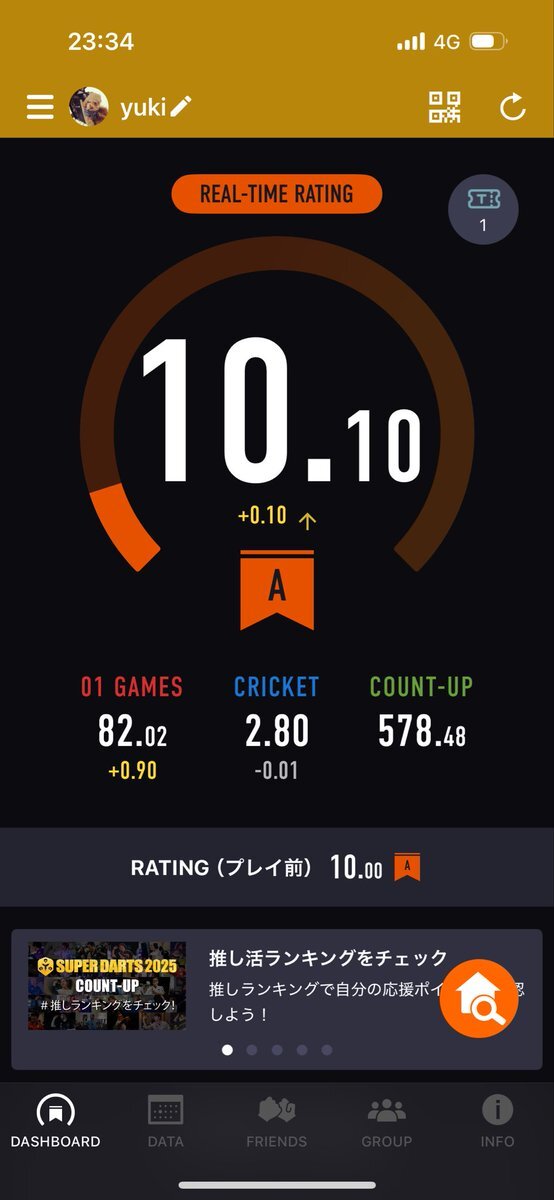 今日のリザルト。 今日は3時間dartsLiveして、台の反応が終始悪くてオンラインですごく迷惑かけてしまった😥 やむなくphoenixに移動して1時間だけ投げました。 phoenix久々に開いたけど6→8に上がりました。 有料会員になるか悩みどころ #darts #ダーツ好きと繋がりたい #ダーツ仲間が欲しい #福岡 pic.x.com/UV91jT9VaJ