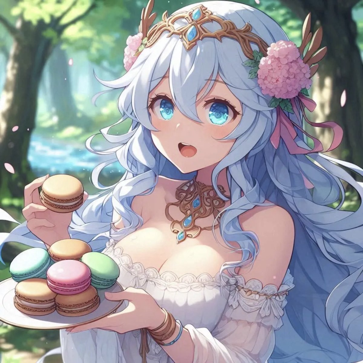 おはようございます😄 #AIart #AIイラスト #今日は何の日 #マカロンの日 #女神ガイア #Copilot #Designer 今日10月9日はマカロンの日ですね、マカロンを食べようとしている女神ガイア様。 pic.x.com/UgPZ2A7cE3