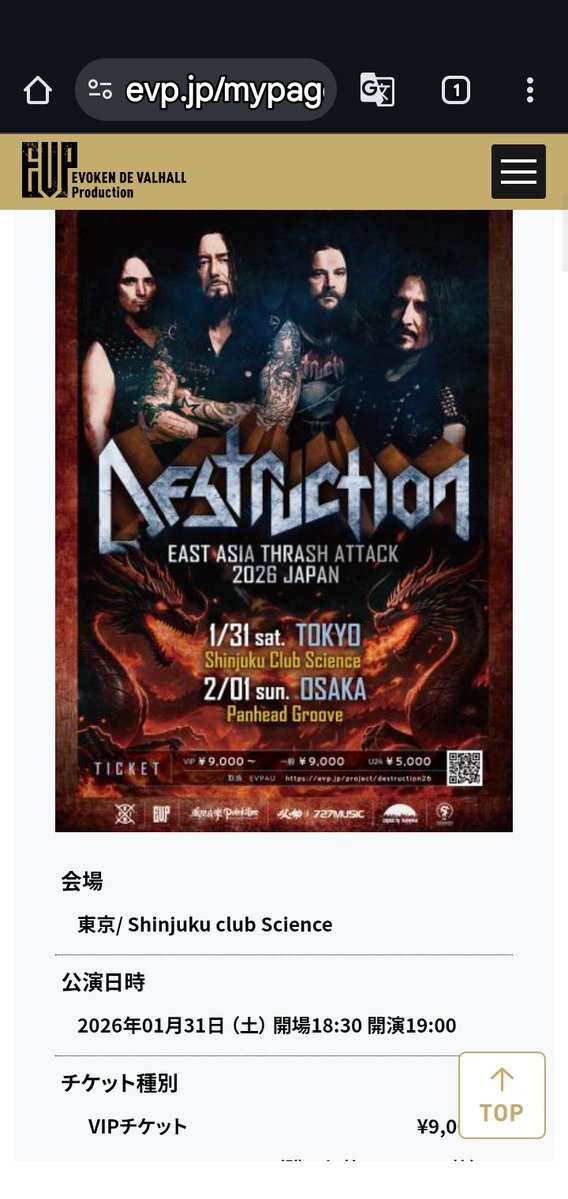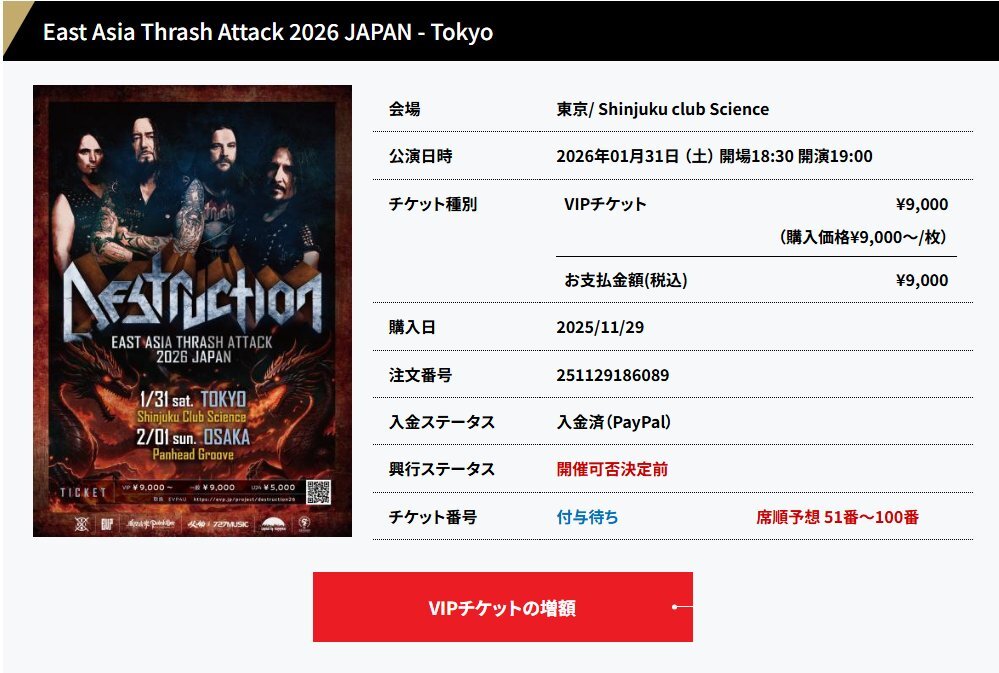3ぷぅん!?前回の鹿鳴館はもっとキャパ少ないのに普通に買えたのに…あの時は平日か?知らんけどとにかくぬかったわ!!#Destruction x.com/evpro666/statu…