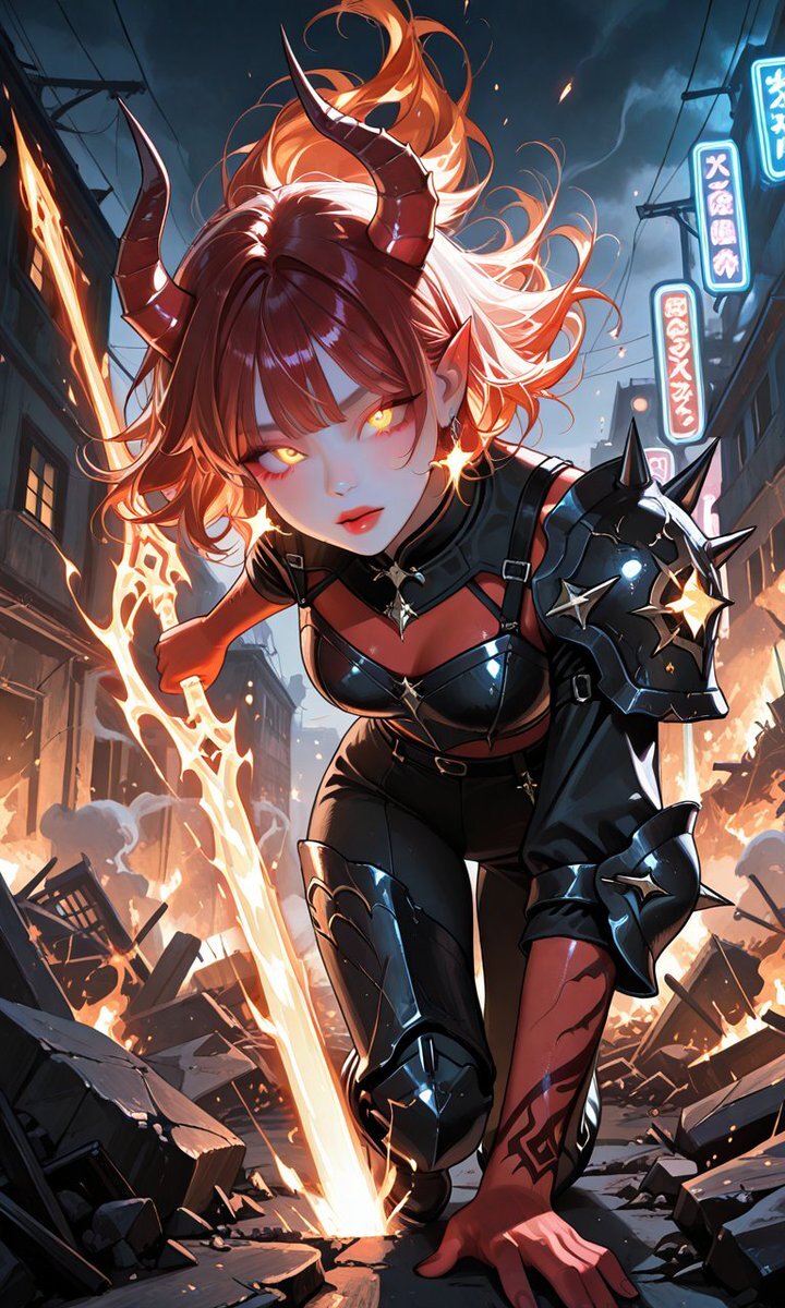 🔥黒い角を持つ悪魔が荒れ果てた戦場に立つ。🩸 鋼の鎧に身を包み、巨大な剣と長槍を握り、攻撃の構えを取る。⚔️ 破壊の嵐の中、勇敢な力と恐怖が交差する瞬間。🌪️💀 #悪魔 #戦士 #破壊 #剣と槍 #鎧 #Demon #Warrior #Destruction #SwordAndLance #Armor #AttackPose #AnimeFan pic.x.com/cHFejOIpZV