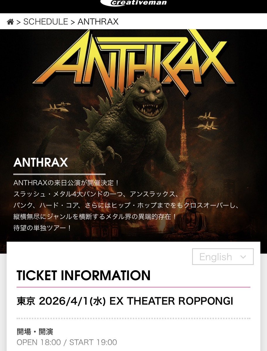 ん〜…Anthrax平日かぁ 悩むなぁ🤔 行けんよなー。 デストラクションもなぁ 観れるの最後かもしれんしな〜。 どれか1つは行きたいんだけど 全て日程が個人的に微妙w #anthrax #lacunacoil #destruction pic.x.com/zqELiXeOSM