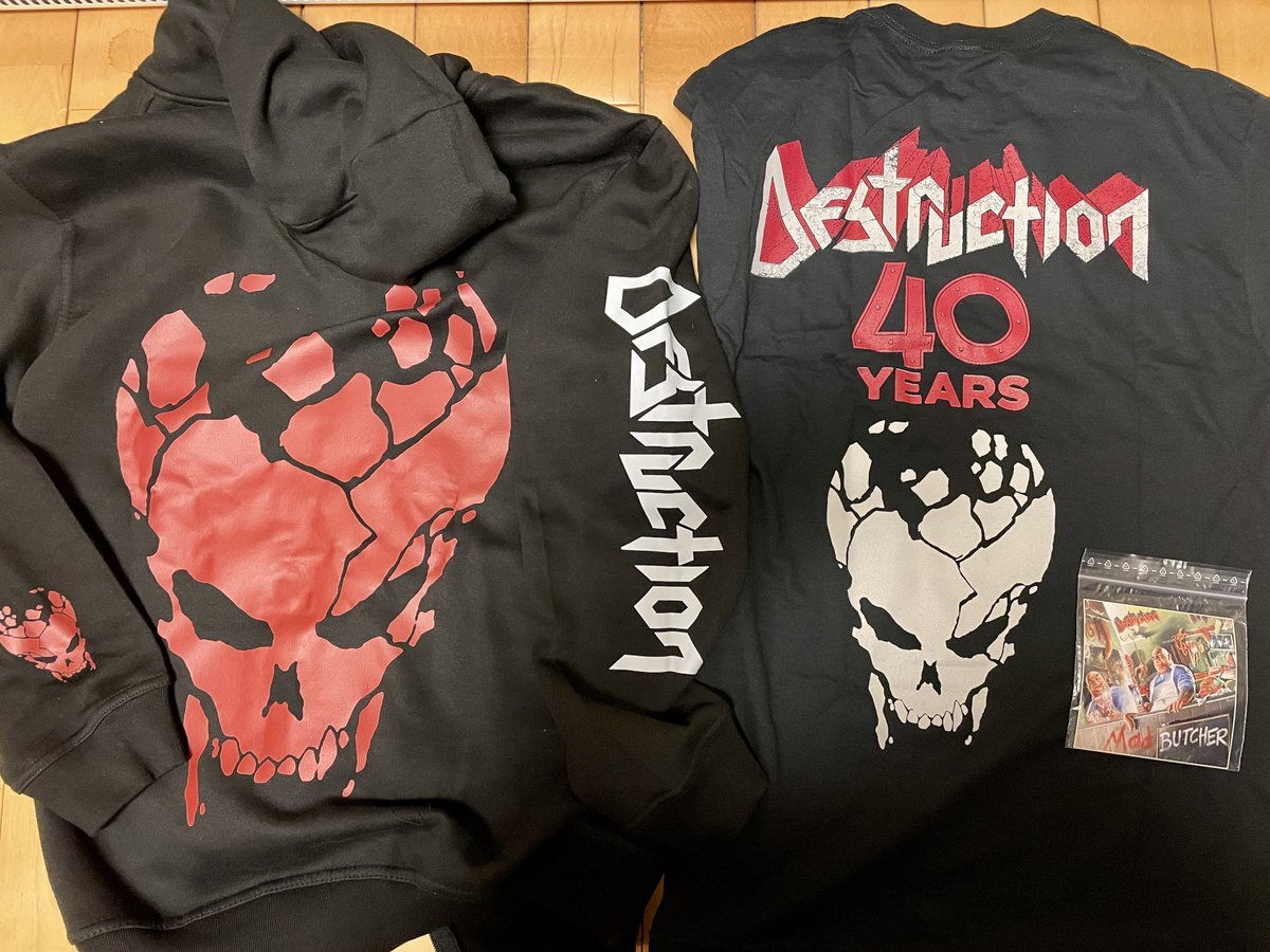 来日公演予約チケットが瞬く間に完売した #DESTRUCTION☠️ そもそも予定があり今回は行けない😭(今まで2度観てる) 40th Aniv.Tシャツとパーカーを本国ドイツ🇩🇪オフィシャルショップから取り寄せたのだ🤘 …やっぱもう一回言わせて。 ☠️観に行きたかった😭 (Mad Butcherジャケステッカーもgetした) pic.x.com/6wcA6Yfd8r